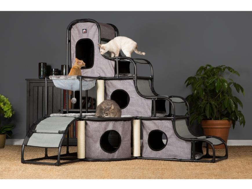 Watch as kitty engages in energetic activity - playing, cratching or climbing in, over and around the Catville Tower.