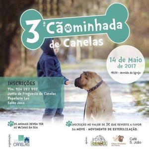3ª Cãominhada de Canelas terá lugar no dia 14-05-2017 em frente à igreja paroquial às 09H00, terá um percurso de + - 4Km, as inscrições são de 3€ e revertem na totalidade a favor do Grupo MOVE-Movimento de esterilização, podem ser feitas através do Tlm 934282993 ou no local da concentração.