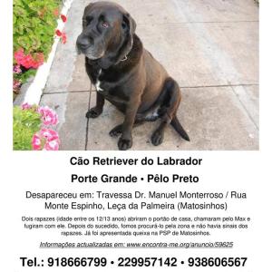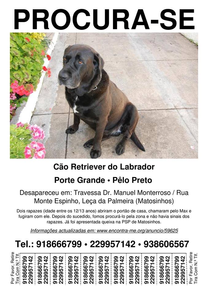 Caso possua alguma informação que permita ajudar a encontrar nosso amigo perdido, pedimos que entre em contacto com o dono.